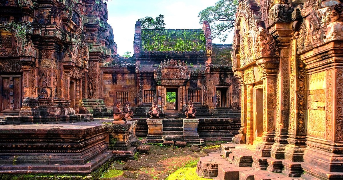 AFTERNOON 1:30 PM: Depart for Banteay Srei temple; After a 30-minute drive from Kbal Spean, arrive at the enchanting Banteay Srei, a temple known as the “Citadel of Women” due to the intricacy and elegance of its carvings. This 10th-century Hindu temple is dedicated to Shiva and constructed with pink sandstone, which gives it a unique hue compared to other Angkor temples.